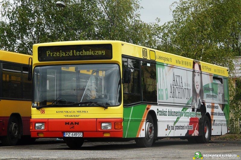 20.06.2011 r. Swarzędz-Garby, ul. Transportowa 1 (była baza Wiraż-Busu). Pierwszy MAN w Swarzędzu krótko przed zdjęciem reklamy i... polakierowaniem przez lakiernika znaczka MAN robionego specjalnie przeze mnie. Teraz jeździ w Tarnowskich Górach.