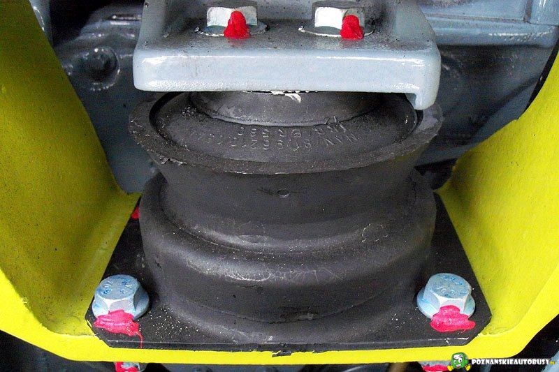 Poduszka zawieszenia silnika. Na takich elementach (leży) silnik, na kilku takich elastycznych poduszkach jest przykręcony do szkieletu autobusu. Poduszki zapobiegają drganiom autobusu w czasie pracy silnika.