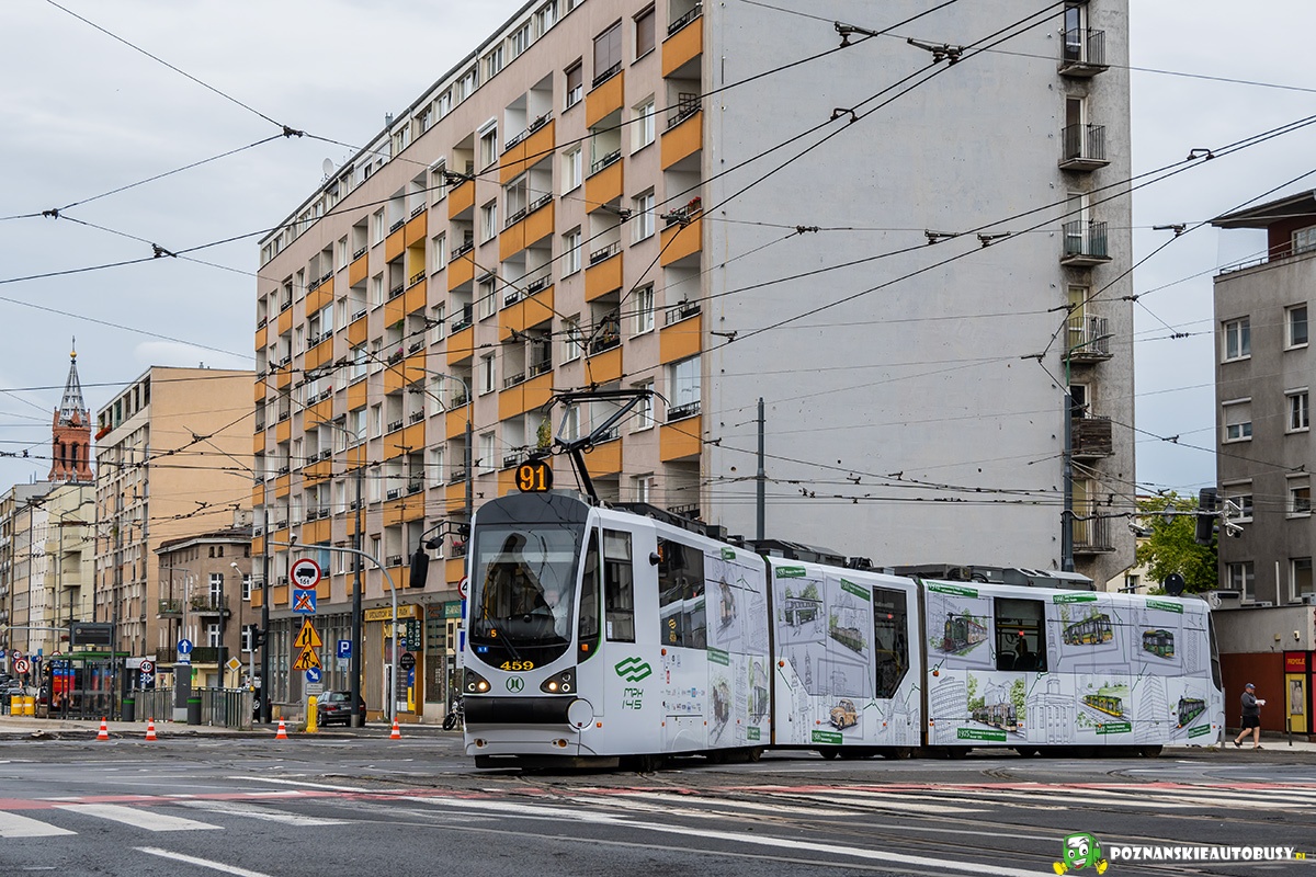 Pierwszy dzień na linii tramwaju z reklamą z okazji 145-lecia komunikacji miejskiej w Poznaniu.