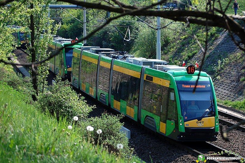 Trasa PST, przed przystankiem Aleje Solidarności. Powoli rozładowujące się wstrzymanie... A w nim same Tramino, na początku wstrzymania oczywiście również.