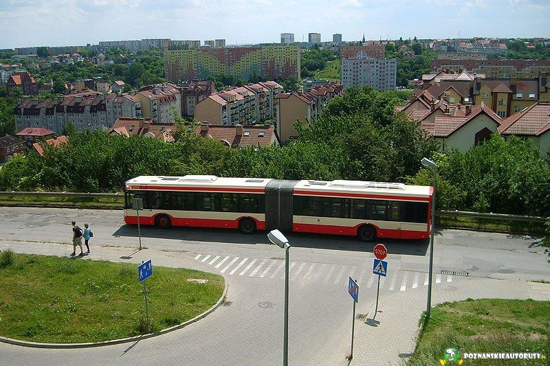 Solaris linii 199 na tle miasta, i dzielnicy Chełm.