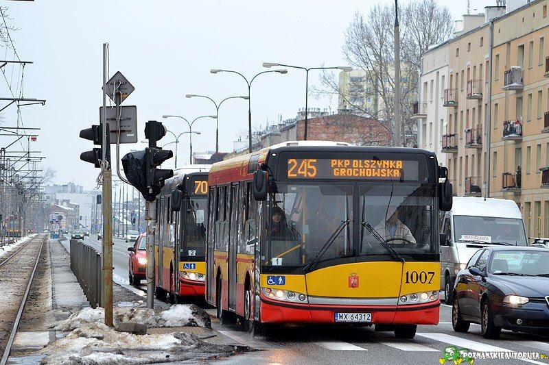 Warszawa, ulica Grochowska, Solaris zabiera się za skręt w ulicę Zamieniecką.