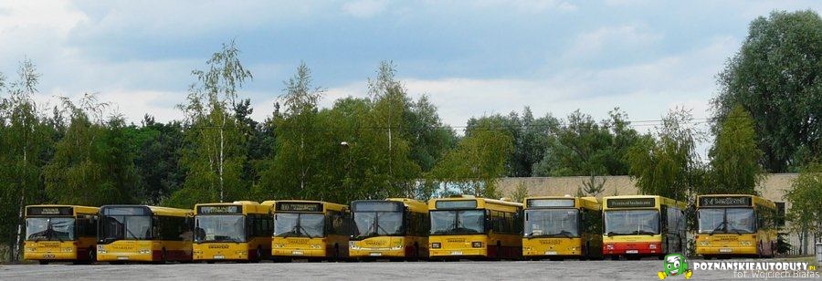 23.06.2011 r. Swarzędz-Garby, ul. Transportowa 1 (była baza Wiraż-Busu). Są tylko dwa dni w tygodniu gdzie połowa wozów stoi na zajezdni. Tutaj od lewej: #019, #021, #011, #014, #017, #016, #012, #08 i #018.