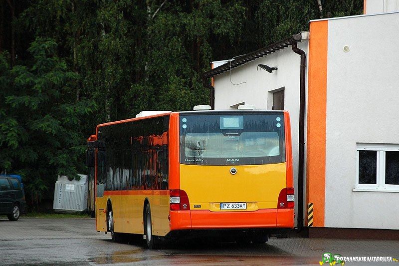 Dzisiaj MANy dotarły do Komornik, i od razu odbyło się oficjalne przekazanie, włącznie z poświęceniem wozów, był również przejazd dla VIPów. Ja jednak dotarłem już po całej imprezie, więc pozostało mi wykonanie knota zza płota. Trochę mi zabrakło cierpliwości, bo później MANy znów kręciły się po bazie, i można było zrobić zdjęcie przodu, ale cóż. Wkrótce mają się pojawić na linii. A kołpaków jednak nie ma... Mnie się chyba mimo wszystko, bardziej podobają nowe Solarisy w Luboniu. Nowe Lion'sy mają otrzymać numery 01, 02 i 03.