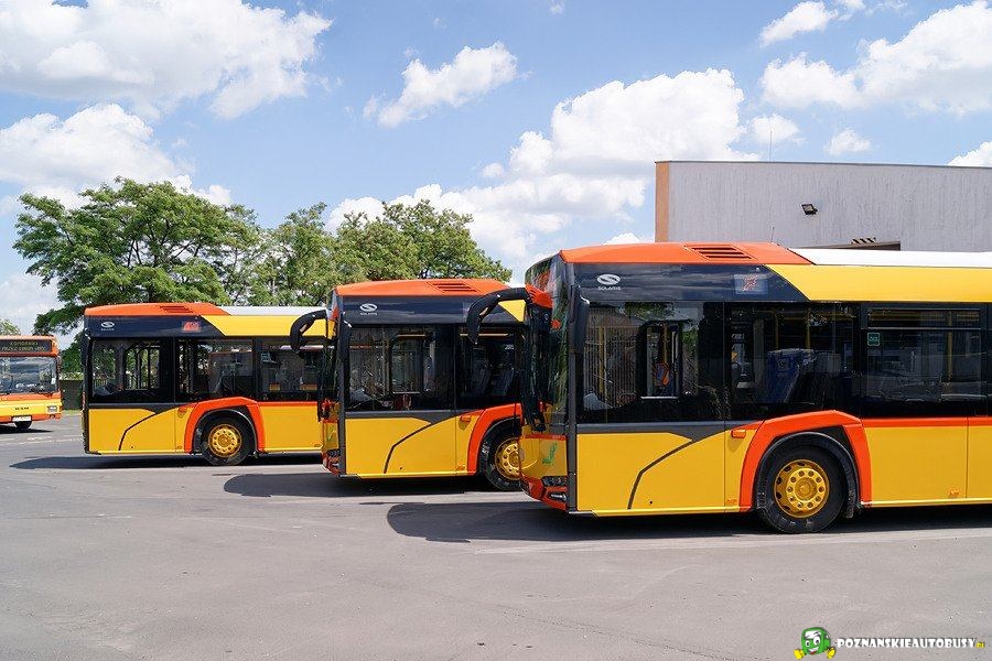 Jeszcze takie ujęcie nówek (od lewej: 7031, 7032, 7033) - a przygląda się temu wszystkiemu przedstawiciel pojazdów, które mogą zostać wyparte przez Solarisy (na szczęście niecałkowicie). Jednocześnie bardzo dziękujemy wszystkim zaangażowanym i towarzyszącym nam osobom z PUK za możliwość pojawienia się na odbiorach aut, a przede wszystkim dziękuję Panu Krzysztofowi Brandtowi - głównemu sprawcy tego zamieszania. :)