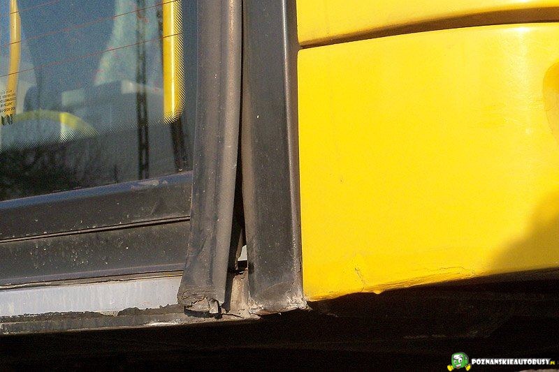 Dziś przejmuje autobus od kierowcy z dwutygodniowym stażem, no tak to wygląda, mówi, że on się dopiero uczy jeździć, a przy krawężniku była dziura no i urwał :(