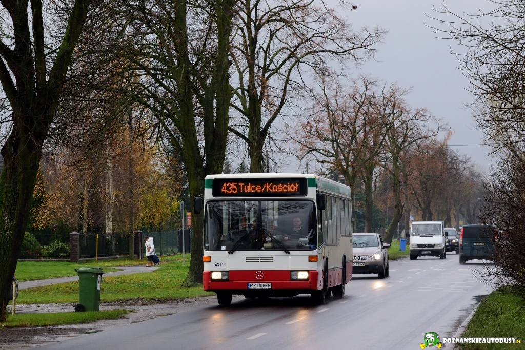 Poznań, ul. Szczepankowo 17.11.2017 r. - Cywilizacja w postaci ZTMu zawitała od listopada także do gminy Kleszczewo. Po integracji część kursów w międzyszczycie i wieczorem została skrócona do Tulec w postaci linii 435, co na tym odcinku daje całkiem przyzwoitą częstotliwość 20/30 minut. Dodatkowo pasażerowie ze Szczepankowa i Spławia zyskali odzyskali szybkie połączenie z Rondem Ratajem. Na minus w wozach, którymi jechałem brak termometrów oraz wozie #4311 brak wyświetlania przystanków.