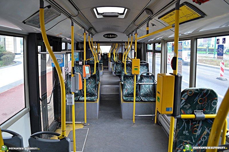 wnętrze pierwszego przegubowego Solarisa w MPK.