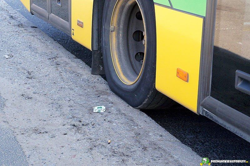 Kierowca popisał się nie ma co, miejsca na dwa autobusy, a trzeba podjechać pod krawężnik i to dosłownie.